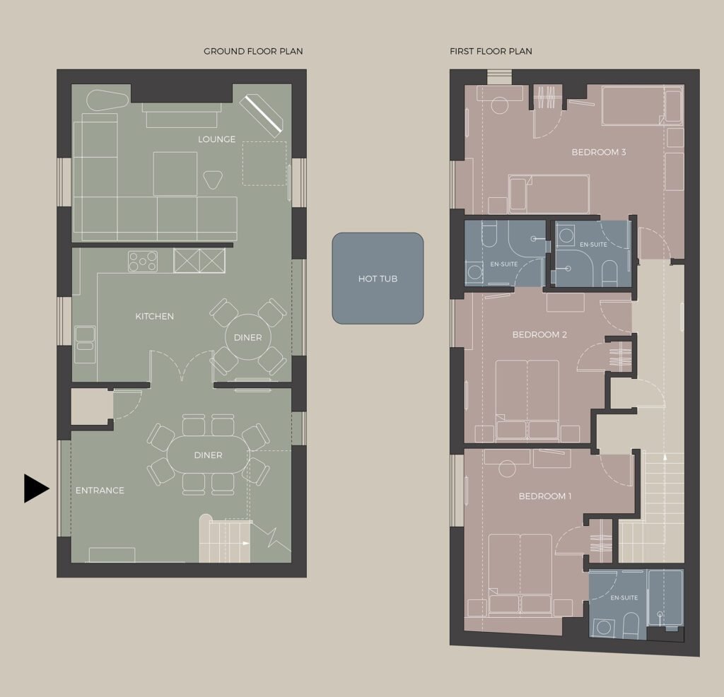 Daisy is the lively hub of Sands Farm. It’s bright and open layout has been designed to bring guests together. The interconnecting kitchen, dining, and cosy lounge space enjoy one sociable sweep. While upstairs, three comfortable en-suite bedrooms, including one equipped with bunkbeds, allow adults to fully relax in their own space. Add in the pretty terraced garden, complete with its own hot tub, and Daisy has all the ingredients for a perfect getaway for families and groups.