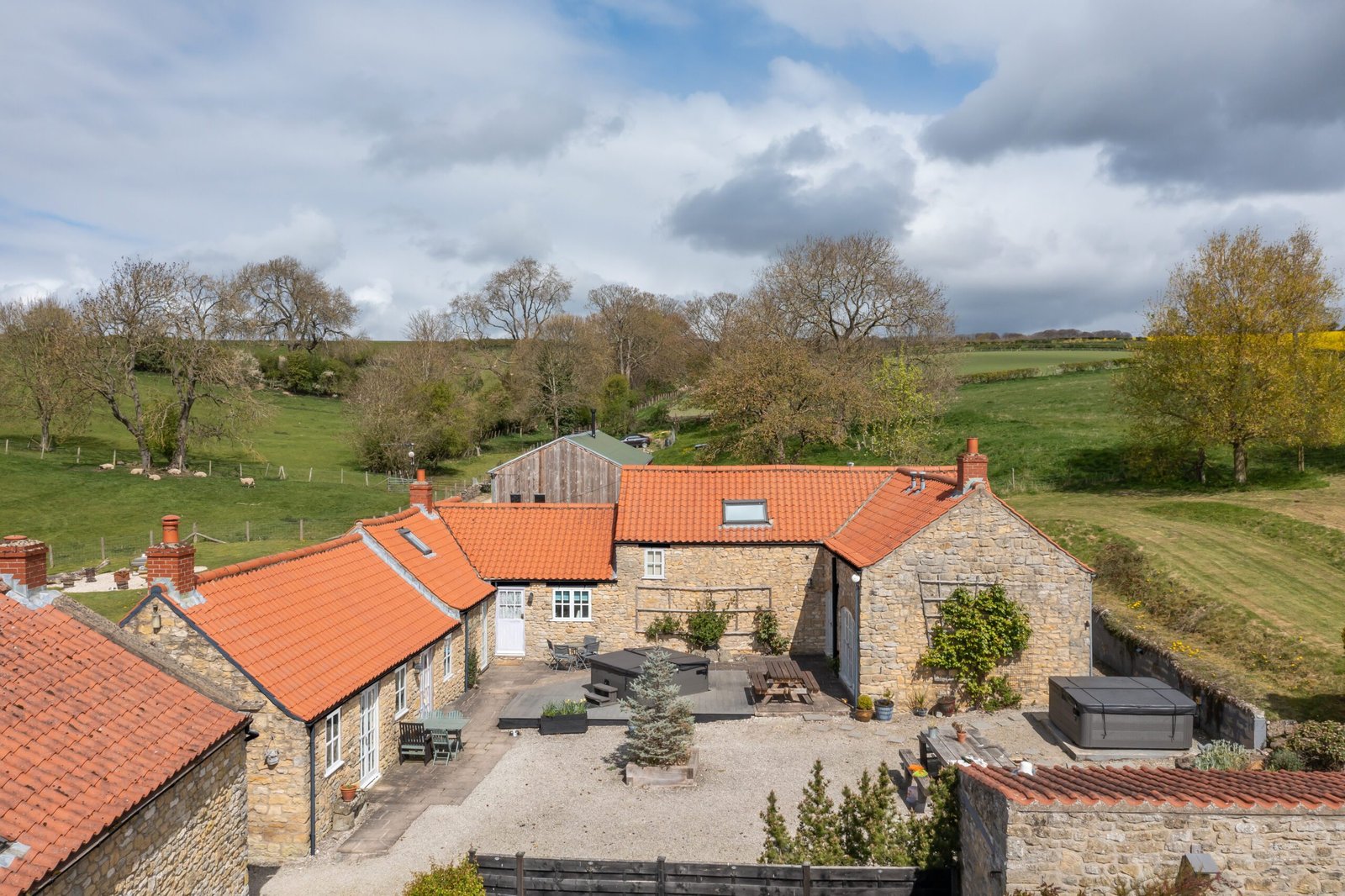 Quietly tucked at the far end of the farm, Rose cottage boasts peaceful, end-of-the-lane seclusion wrapped in generous outdoor spaces including a private courtyard garden, a large hot tub, and easy access to our very own meadow where children can run freely. Inside a spacious and sociable kitchen diner leads to a large living room with a dramatic open-hearth fire, perfect for cosying up with loved ones….