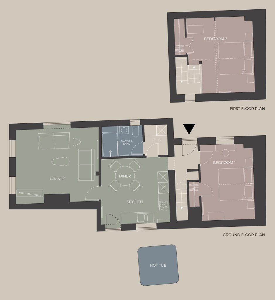 Boasting sweeping rural views and an impressive, vaulted lounge wrapped around a striking stone fireplace, Jasmine is the perfect place to leave the world behind. Whether you’re curled up by the roaring fire, lost in a great book, relaxing in the hot tub, or gazing across the open fields you’ll discover a sense of calm in every corner of this charming cottage. Bedrooms on separate floors offer sharers the additional privacy and comfort that makes Jasmine easy to enjoy and hard to leave.