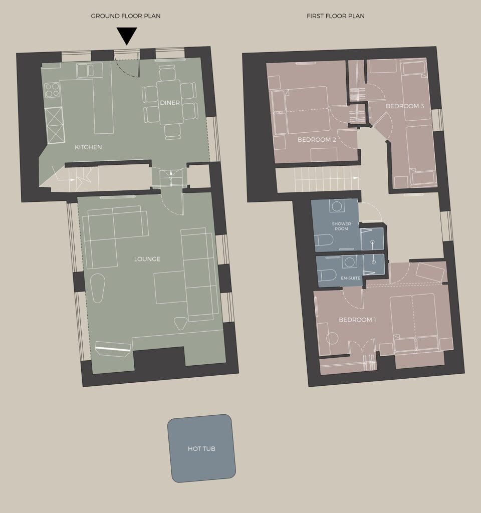 Quietly tucked at the far end of the farm, Rose cottage boasts peaceful, end-of-the-lane seclusion wrapped in generous outdoor spaces including a private courtyard garden, a large hot tub, and easy access to our very own meadow where children can run freely. Inside a spacious and sociable kitchen diner leads to a large living room with a dramatic open-hearth fire, perfect for cosying up with loved ones. Stylish ensuite bedrooms tucked into the rafters complete the delightfully serene Rose experience.