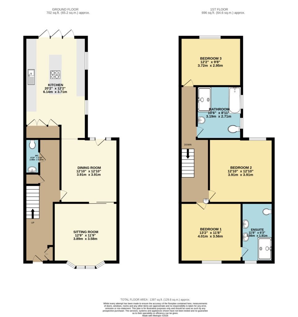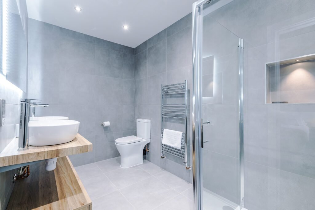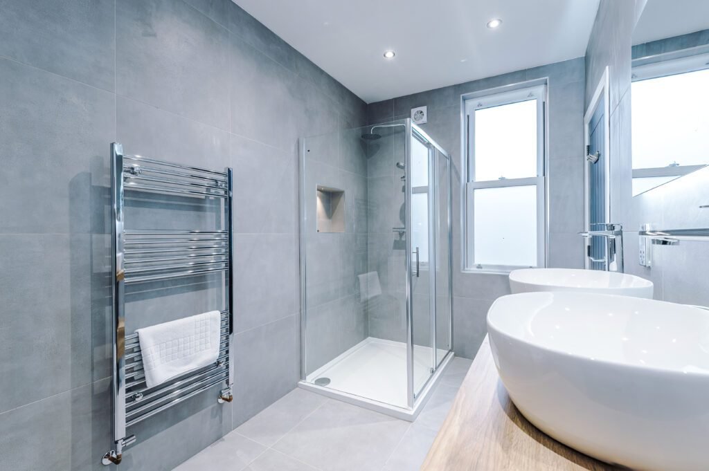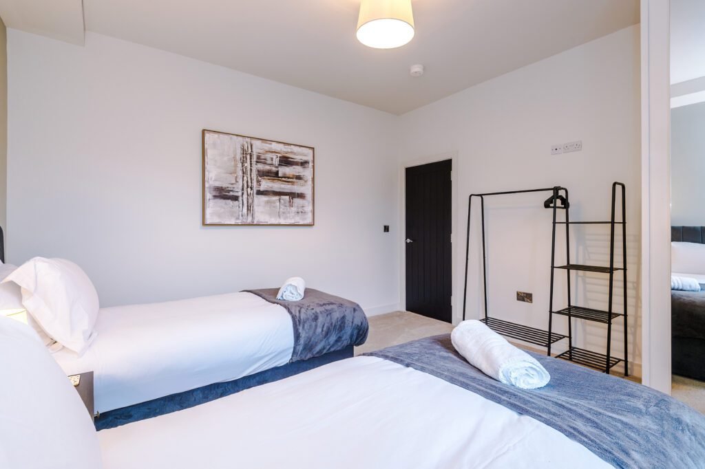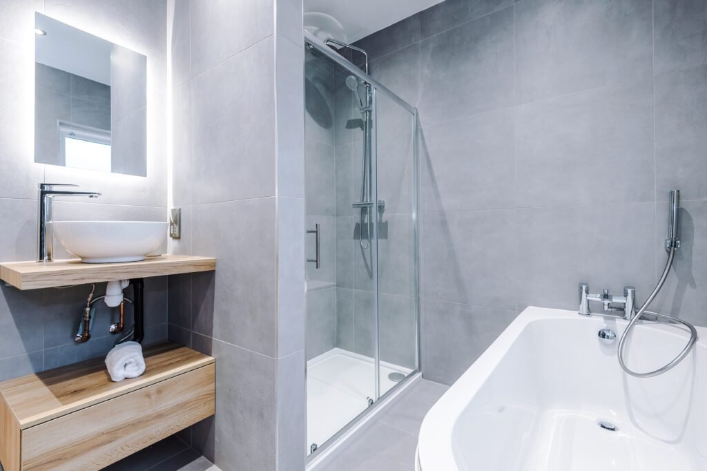 A stylish family bathroom serves the remaining bedrooms and includes both a bathtub and a separate shower, offering flexibility for all guests.